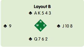 A 3-1 club break is more likely than a 2-2 break, so look at Layout B and imagine you are playing in no-trumps. Do you notice a problem now?