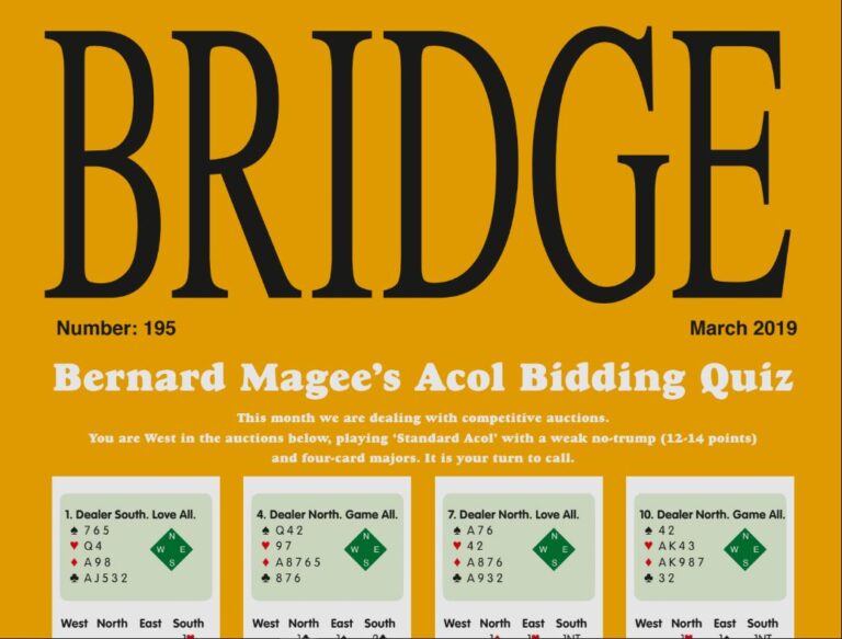 Gostyn Waites led the 2♠️ and down went the dummy. He gasped as he saw the four-card spade support. Gisborne had a 4–3–3–3 shape, yet surely he should have raised the Sheriff’s spades?