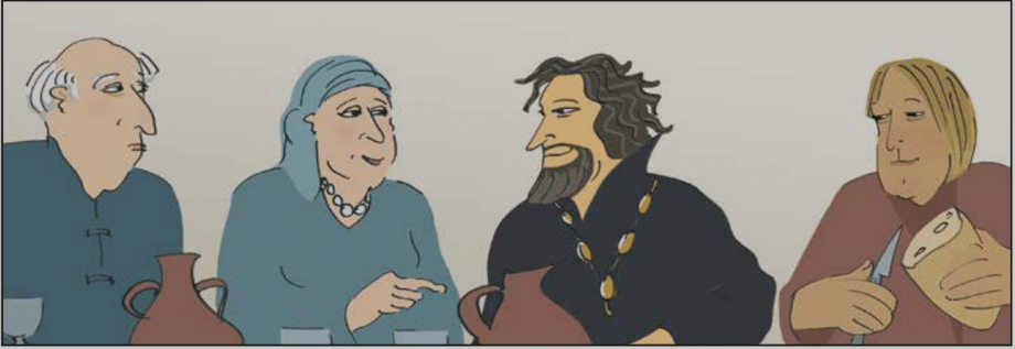 An affronted Friar Tuck swallowed his mouthful. ‘As you know full well, this is not my first pie,’ he replied. ‘I come here only once a week. With such tasty fare on offer, I have to make the most of it.’